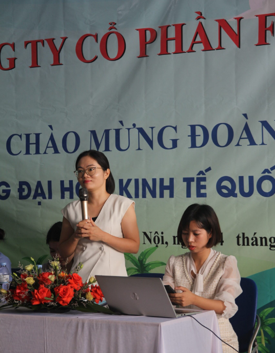 Buổi tham quan mở đầu bằng phần giới thiệu tổng quan từ đại diện của FFION. Sinh viên được cung cấp thông tin về lịch sử hình thành, sứ mệnh, và tầm nhìn phát triển của công ty. FFION là doanh nghiệp hoạt động trong lĩnh vực bán buôn thực phẩm, với sản phẩm chính là chuối – mặt hàng đang có nhu cầu lớn ở cả thị trường trong và ngoài nước. Tại thị trường nội địa, chuối của FFION được phân phối rộng rãi tại các hệ thống siêu thị lớn như VinMart, Co.opmart và Mega Market. Trong khi đó, ở thị trường quốc tế, sản phẩm chuối của công ty đã chinh phục được những thị trường đòi hỏi cao như Singapore nhờ vào chất lượng vượt trội và khả năng đáp ứng các tiêu chuẩn khắt khe về an toàn thực phẩm.